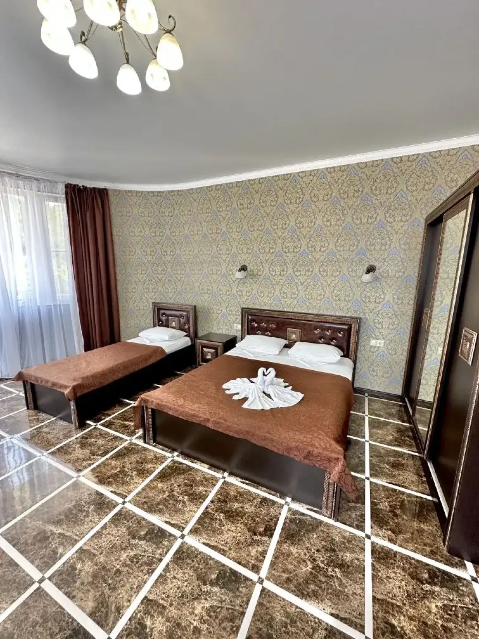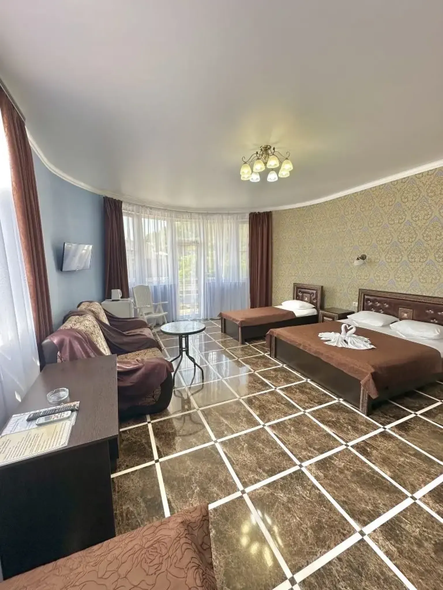 Номер с балконом, предлагающий восхитительный вид, является идеальным выбором для тех, кто ценит комфорт и уединение.
